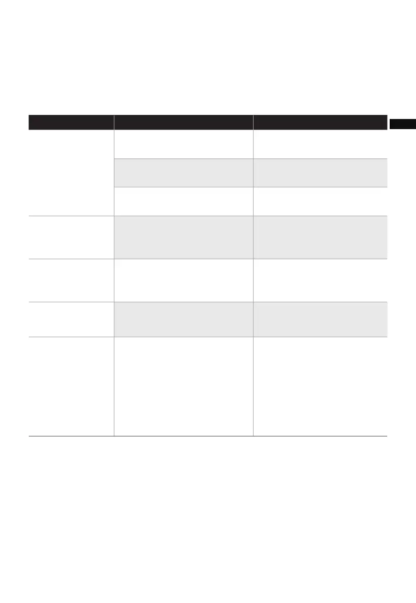tableaux suivants contiennent les causes possibles et des remarques pour résoudre