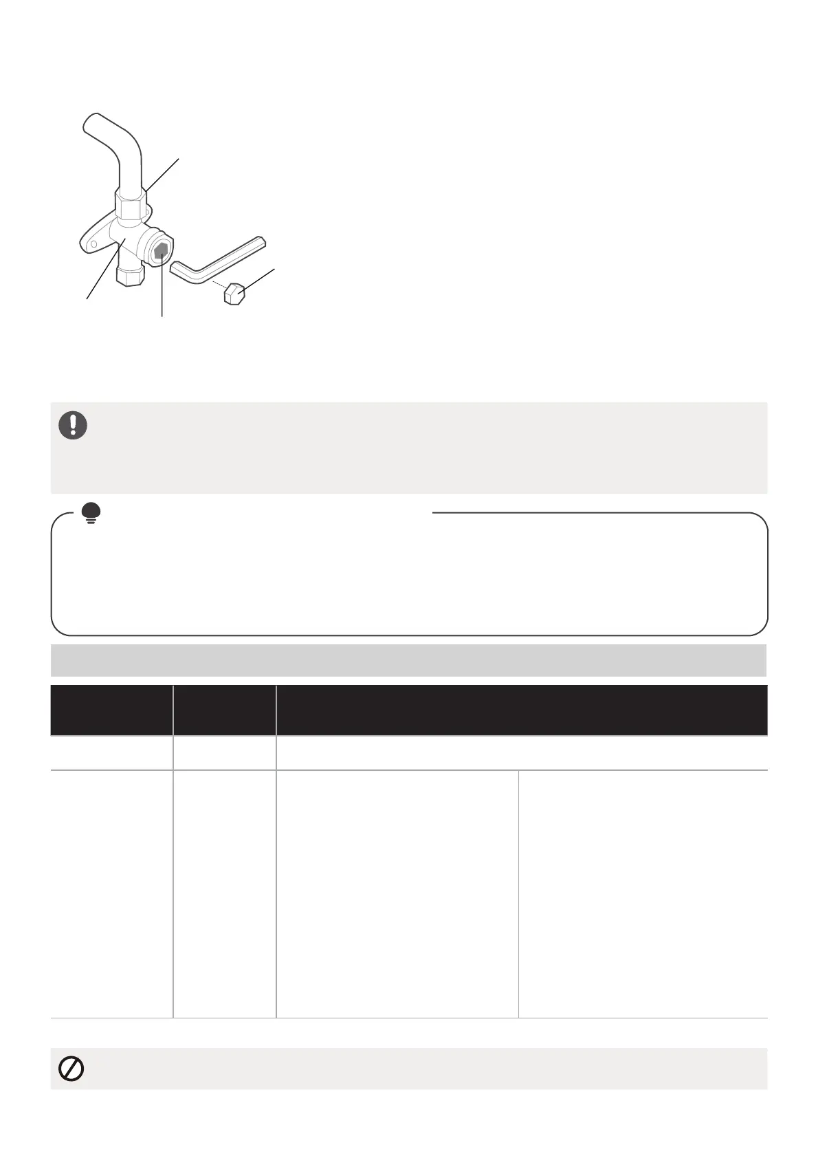 Apabila membuka batang injap, putar sepana heksagon sehingga ia terkena pada penyumbat. Jangan