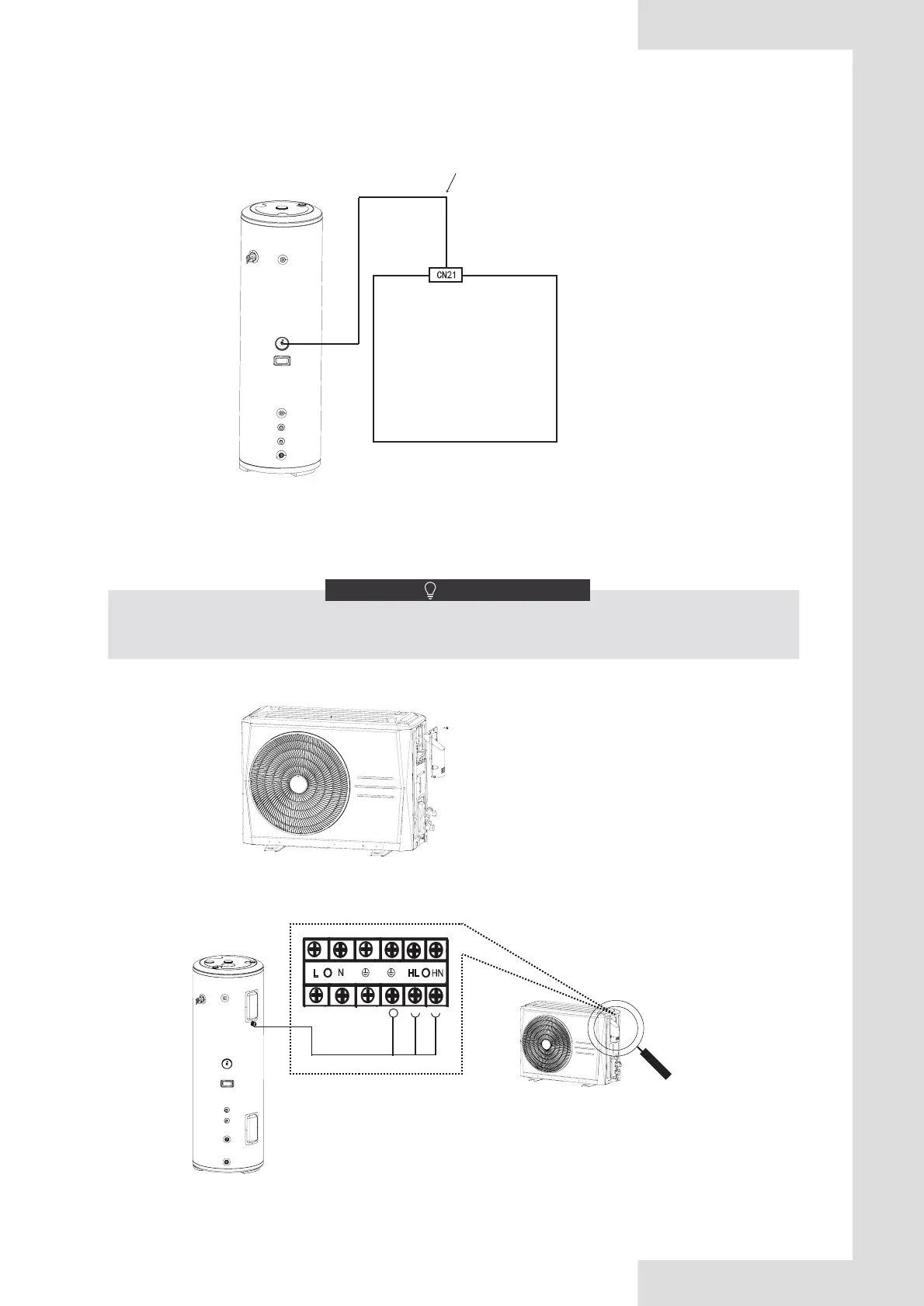 Connect the water tank temperature sensor wire connector to the outdoor unit T5L connector.