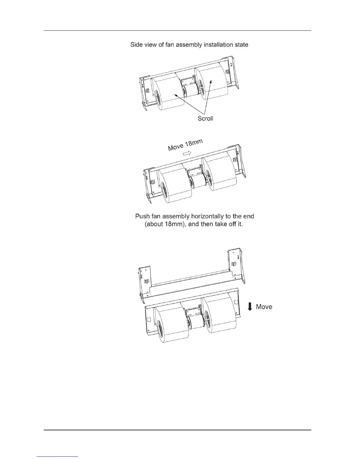 After motor maintenance, re-install the fan motor assembly as per reverse above