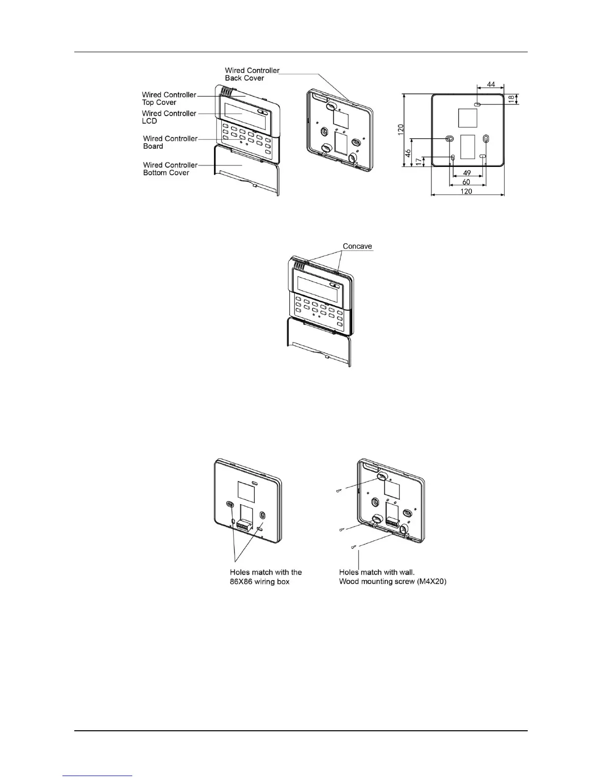 installing the wired controller cover, be sure to reserve a hole in the wall to avoid the