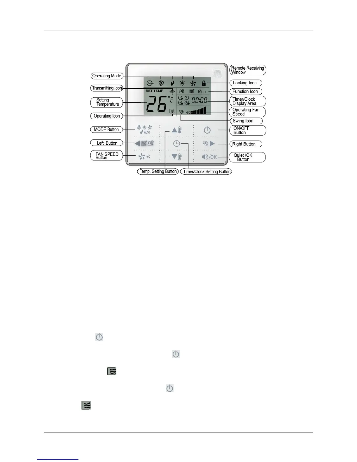 Notes: The wired controller will not receive the swing controlling instruction. For the indoor unit