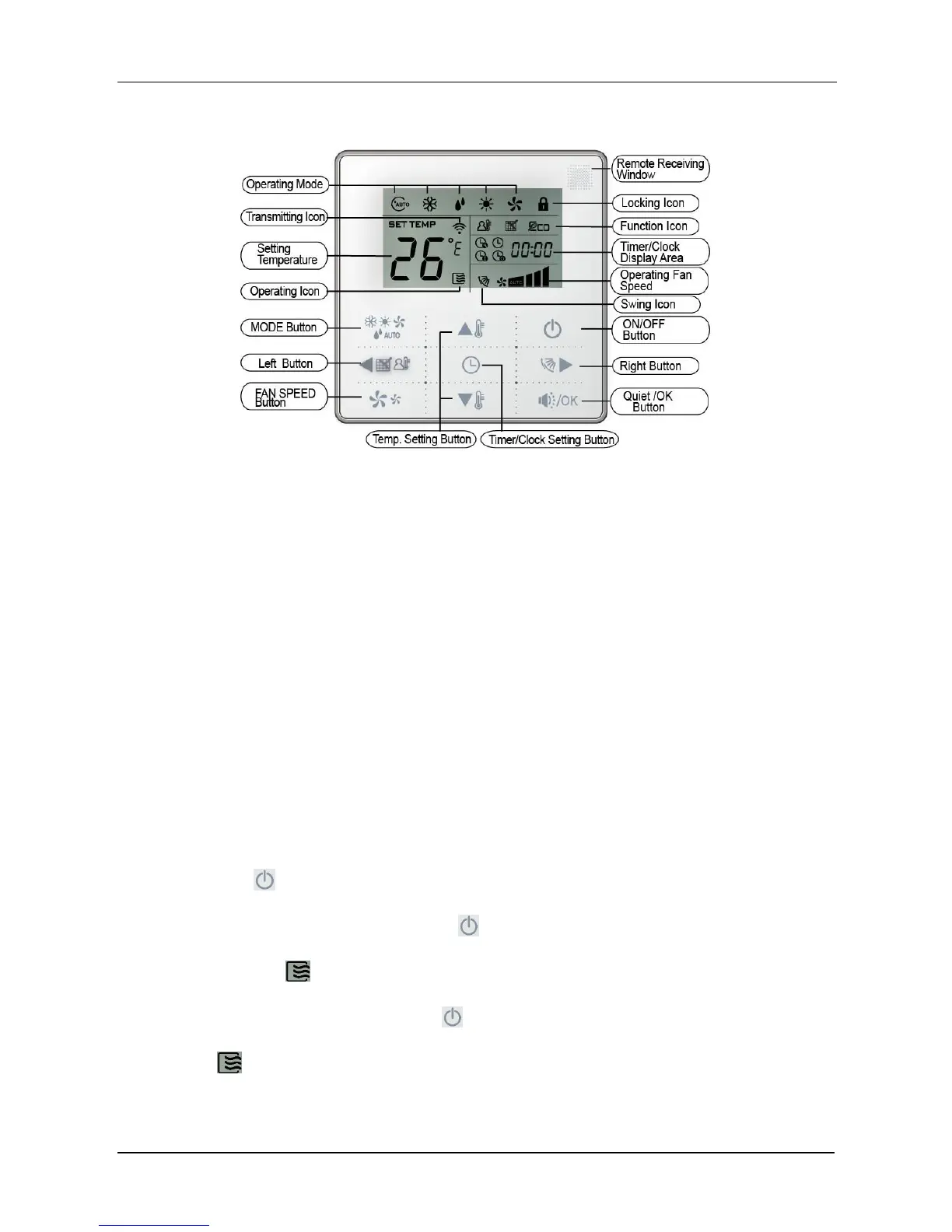 Notes: The wired controller will not receive the swing controlling instruction. For the indoor unit with