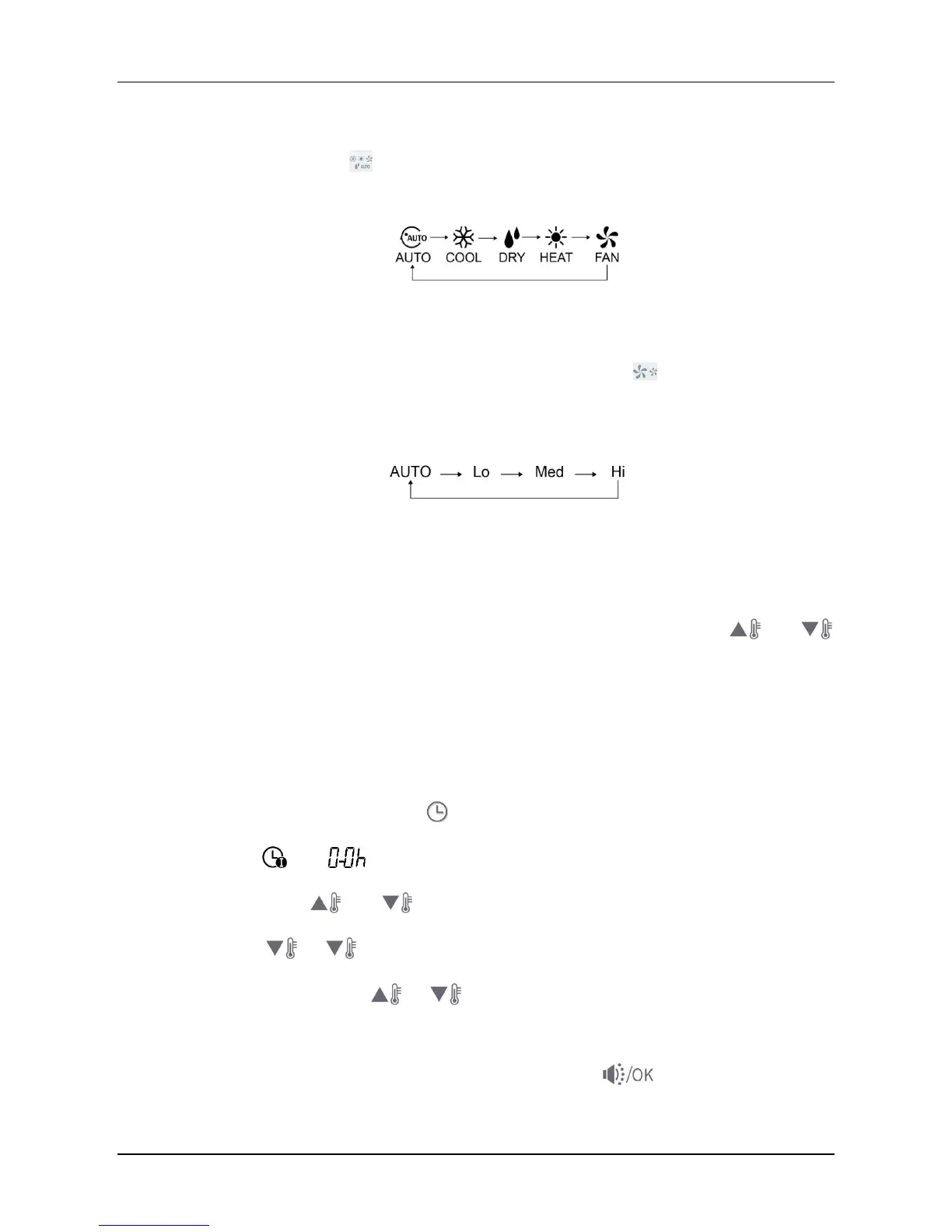 Notes: Under AUTO and DRY modes the fan speed is not adjustable and the default fan speed is auto.