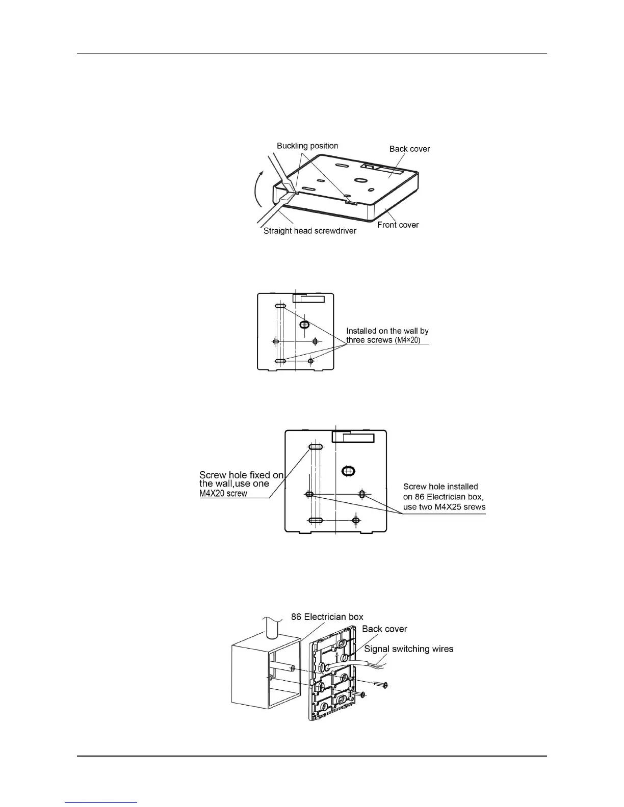 Use two M4×25 screws to install the back cover on the 86 electrician box, and use one