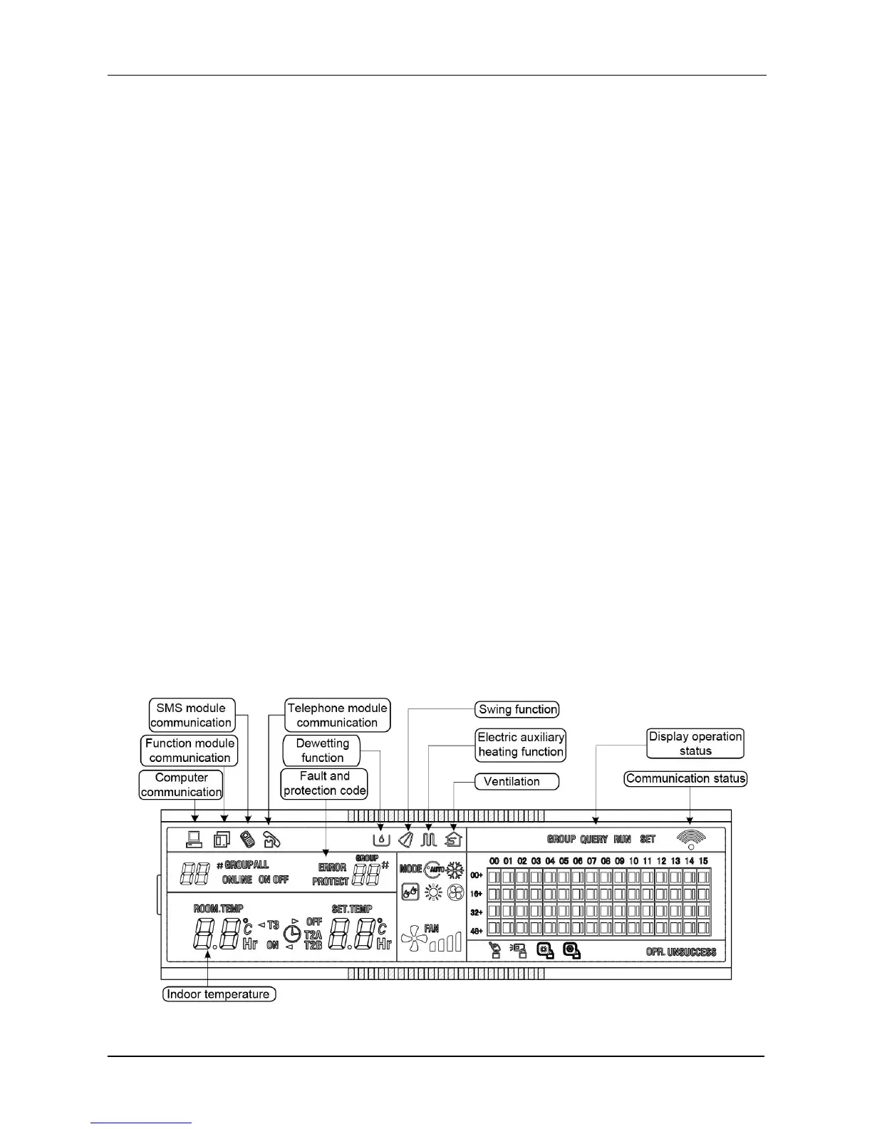 16) ON/OFF: Any time when pressing the key, the centralized startup/shutdown operation is