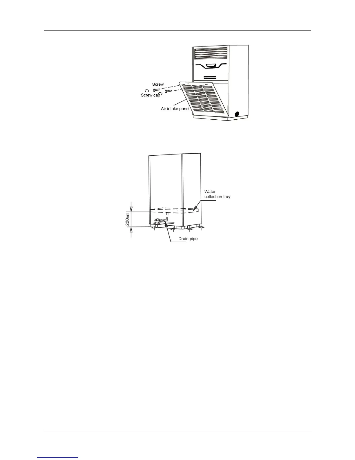 There is natural drain, it is should be confirmed that the height of drain pipe is not higher than