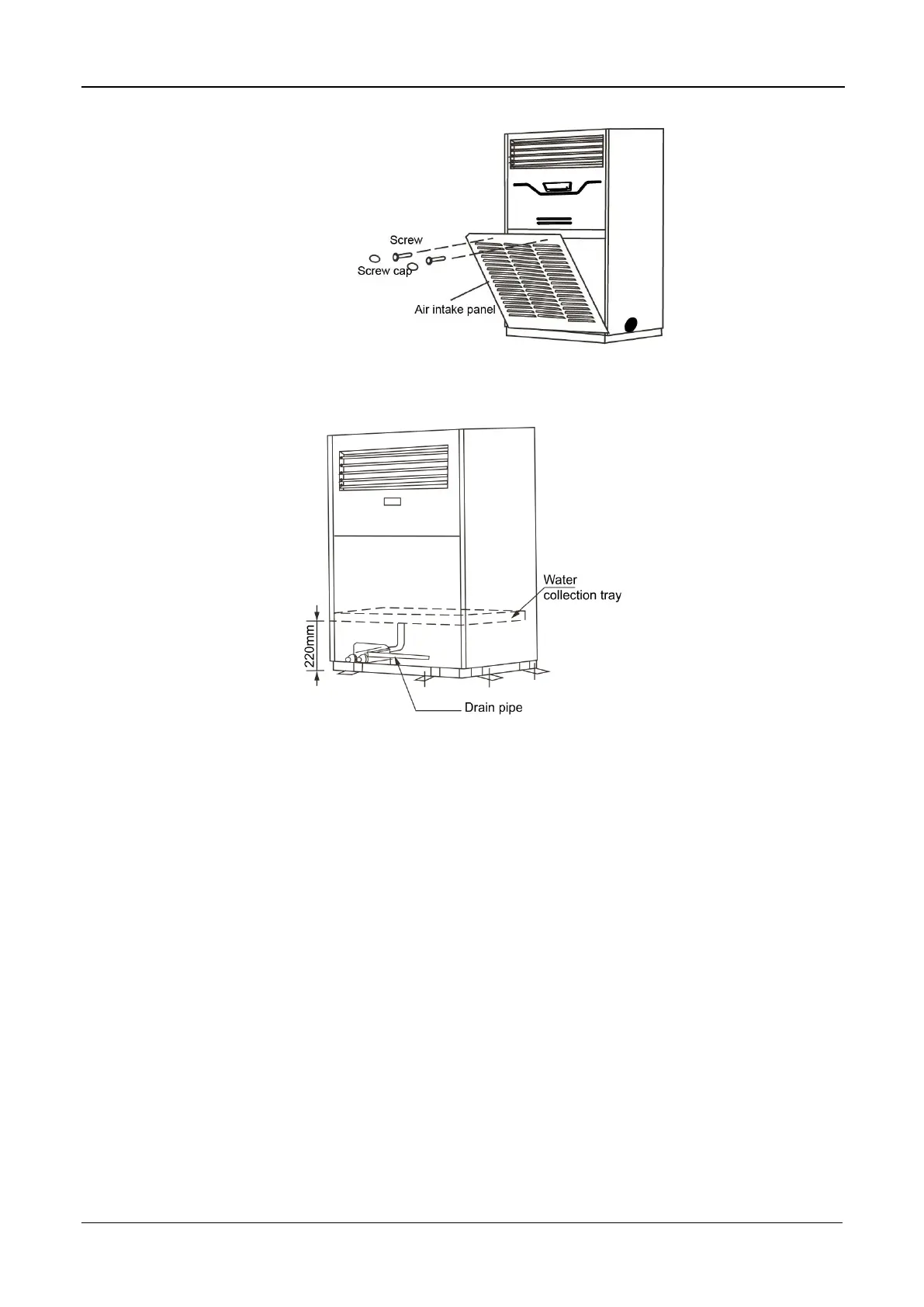There is natural drain, it is should be confirmed that the height of drain pipe is not higher