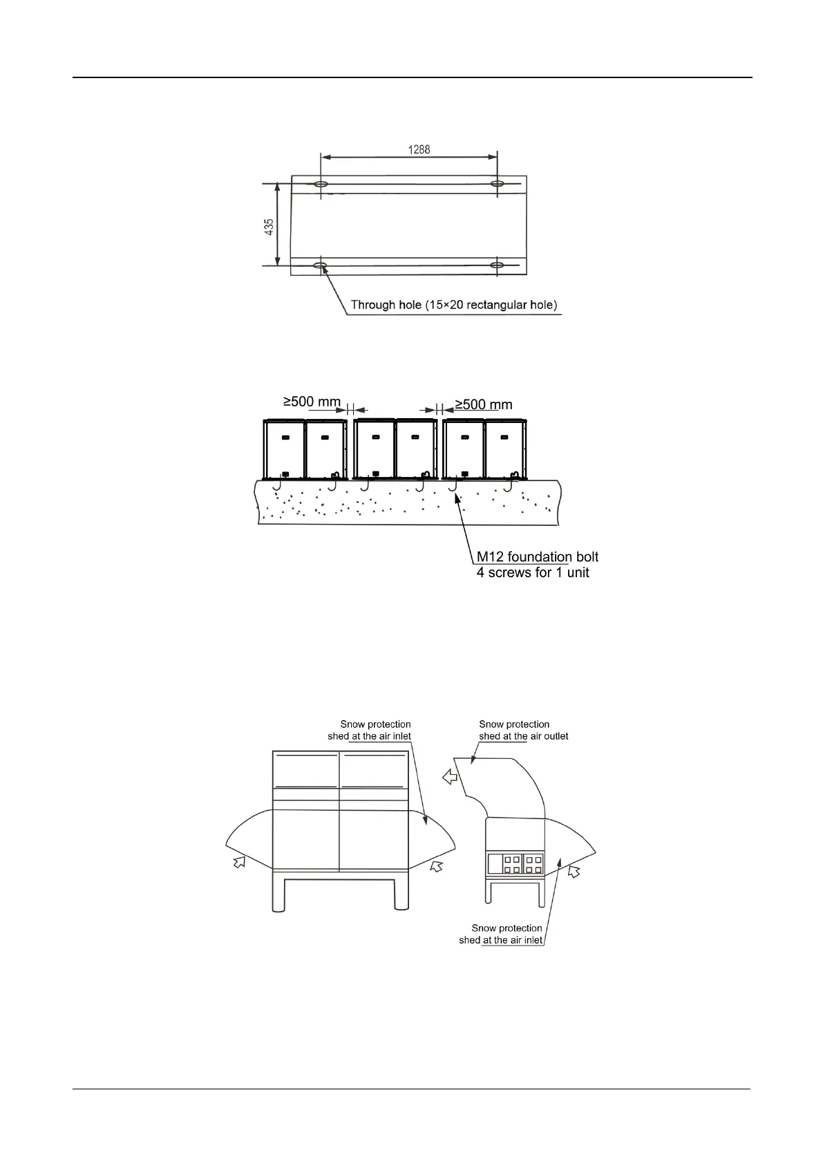 by snow, set up raised pavilion, and install snow protection sheds at the air inlet and air