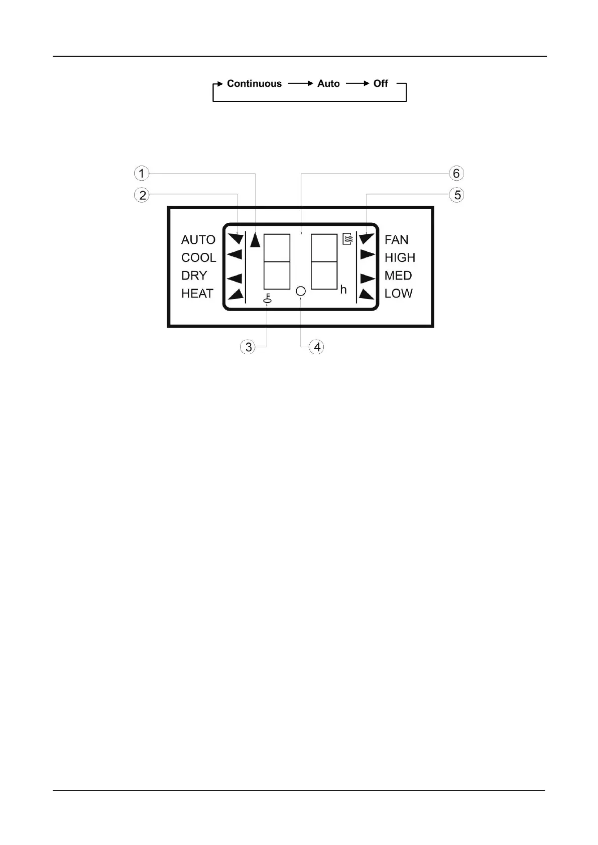 ② MODE Display: Show the current operation modes, AUTO, COOL, DRY and HEAT. HEAT