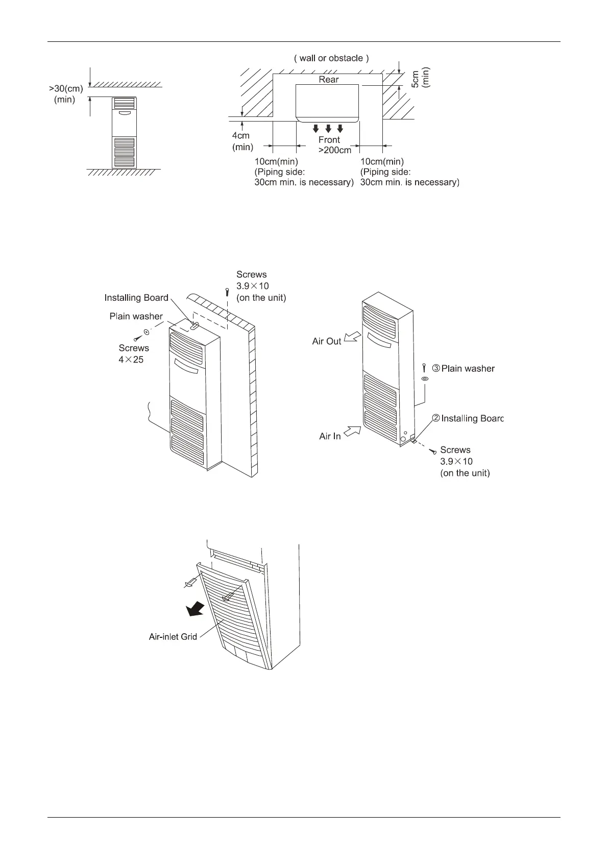 Please take off the air-inlet grid before connecting the pipes/wires.