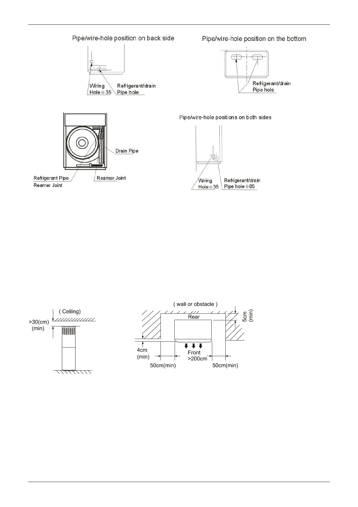 a. A place which provides the spaces around the indoor unit as required above in the diagram.