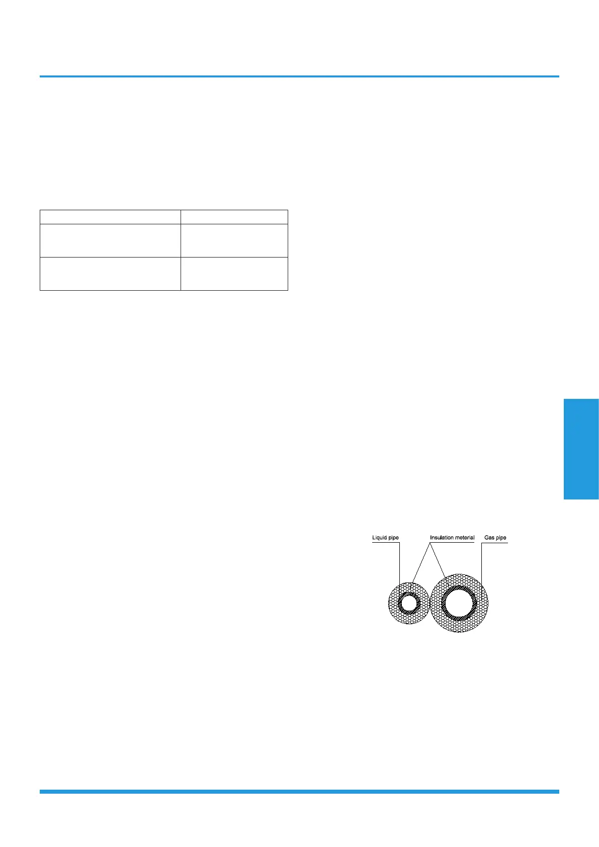 • Gas pipe and liquid pipe shall be insulated sepa-