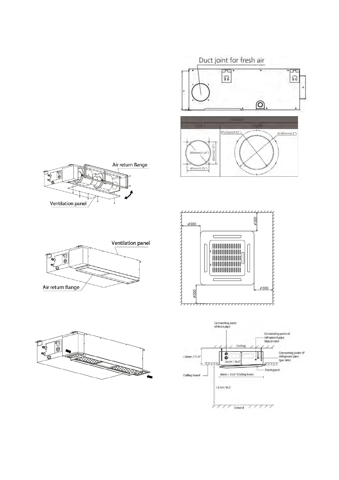 Midea MUE-36HRFN1-M(C) - Adjust the Air Inlet Direction; Fresh Air Duct Installation; Compact Cassette Indoor Unit Installation