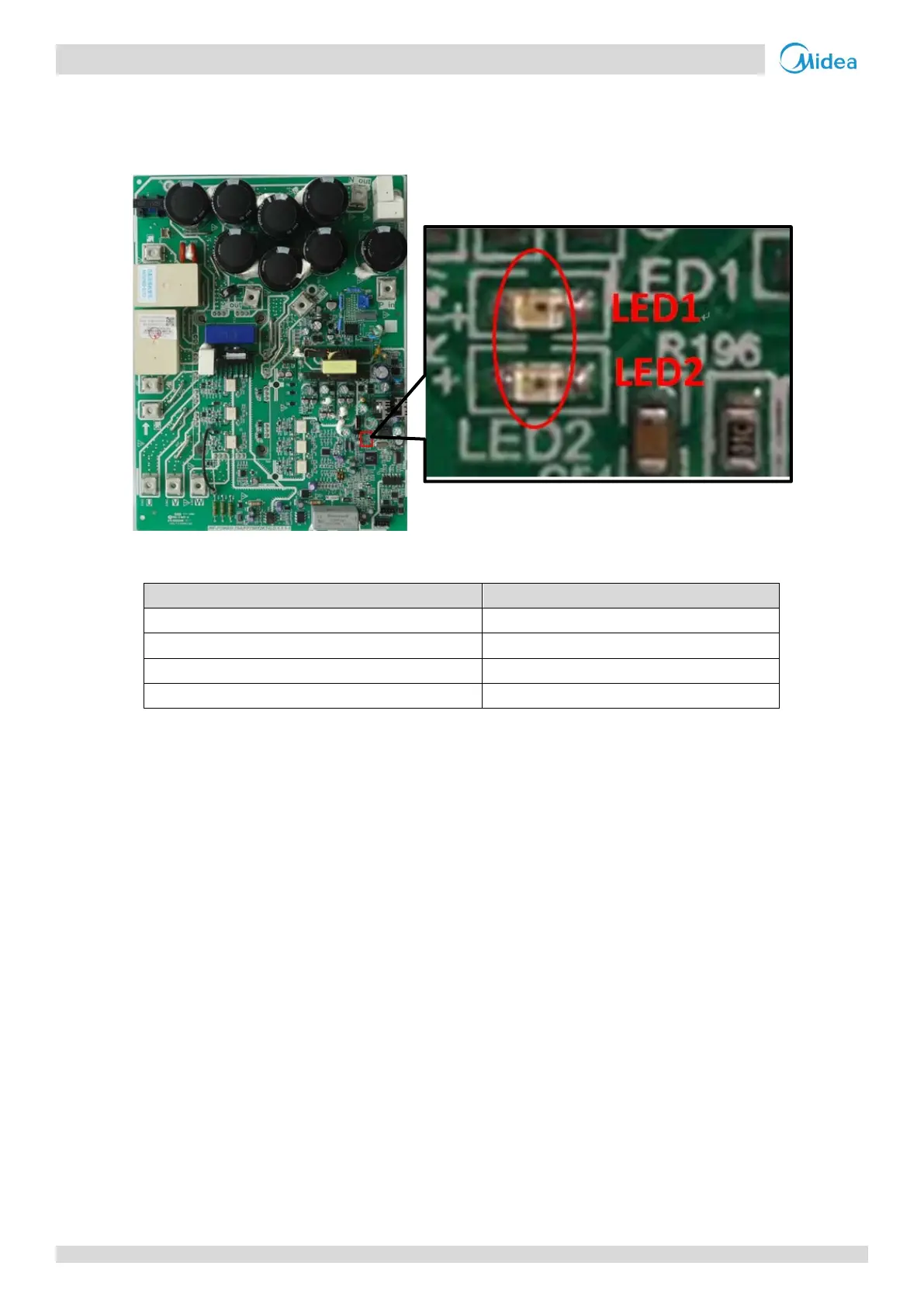 module error has occurred, LED2 is continuously on and LED1 flashes.
