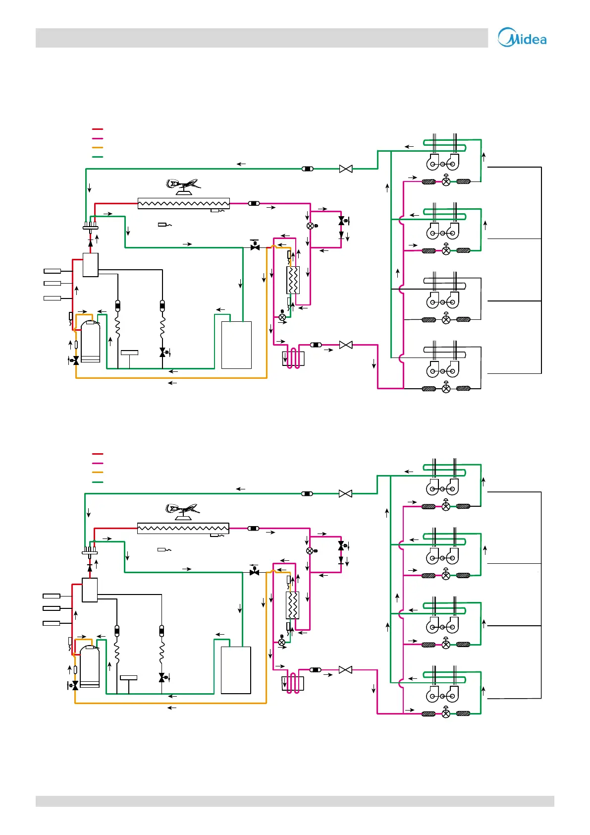 Figure 2-3.2: 8/10/12HP refrigerant flow during oil return operation in cooling mode