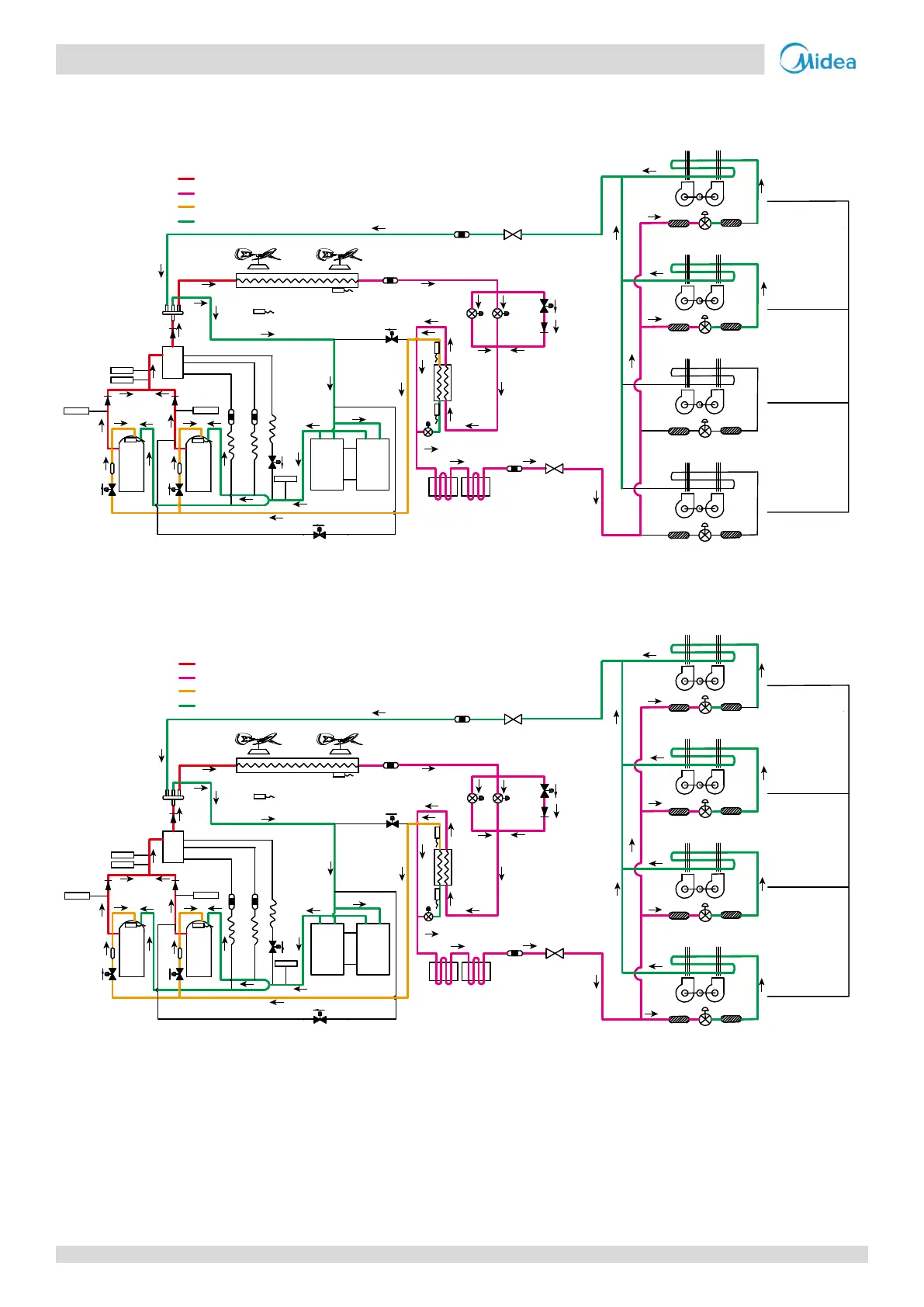 Figure 2-3.14: 24/26/28HP refrigerant flow during oil return operation in cooling mode