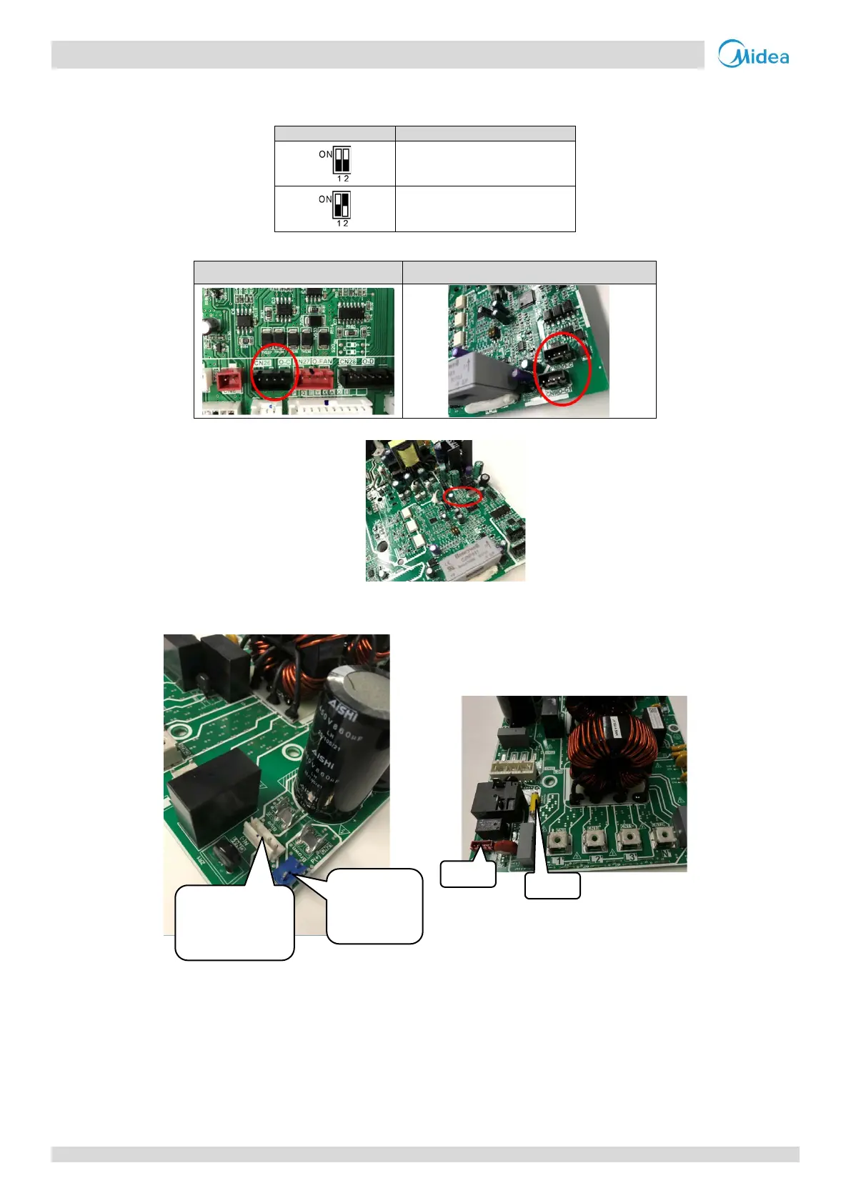 1. Compressor inverter module address is set through dial switch S7 on the inverter module. The compressor inverter module A/B location refers to the wiring