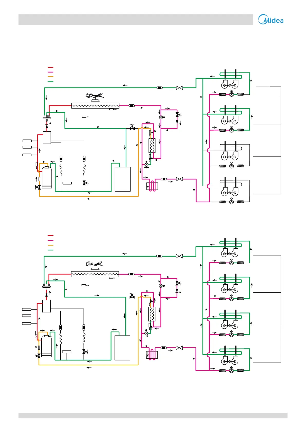 Figure 2-3.2: 8/10/12HP refrigerant flow during oil return operation in cooling mode