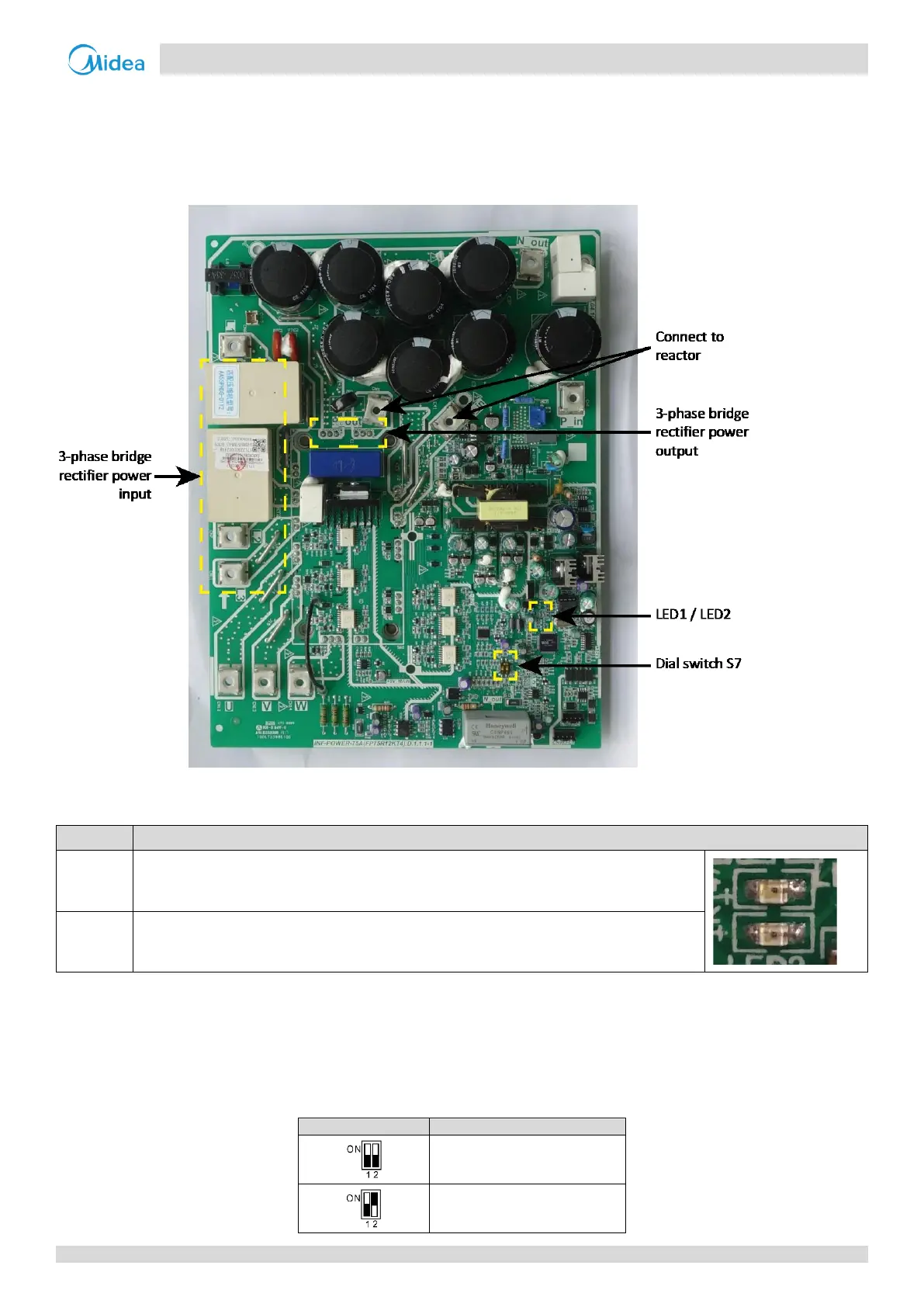 Dial switch S7 is used to set compressor inverter module A/B address. The compressor inverter module A/B location refers