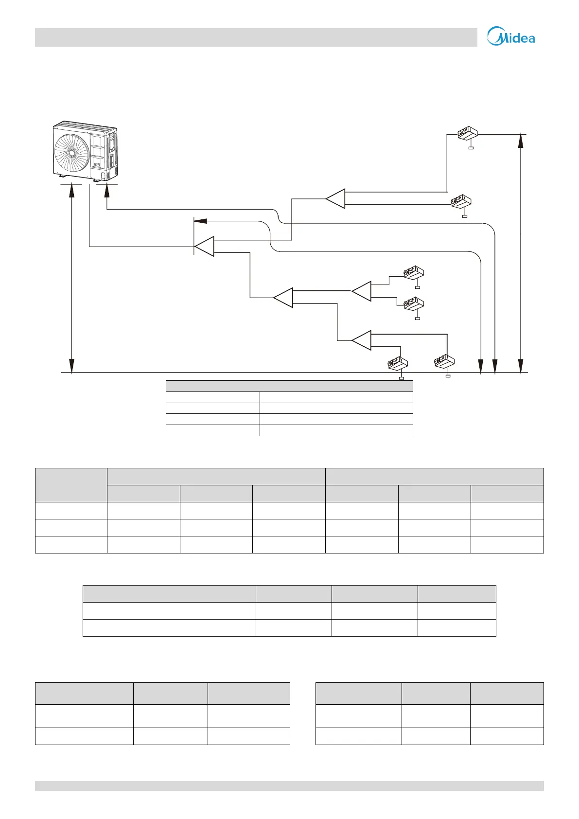 1. If indoor main pipes (L2 to L5) are larger than the main pipe (L1), indoor main pipes should reduce to the main pipe’s size.