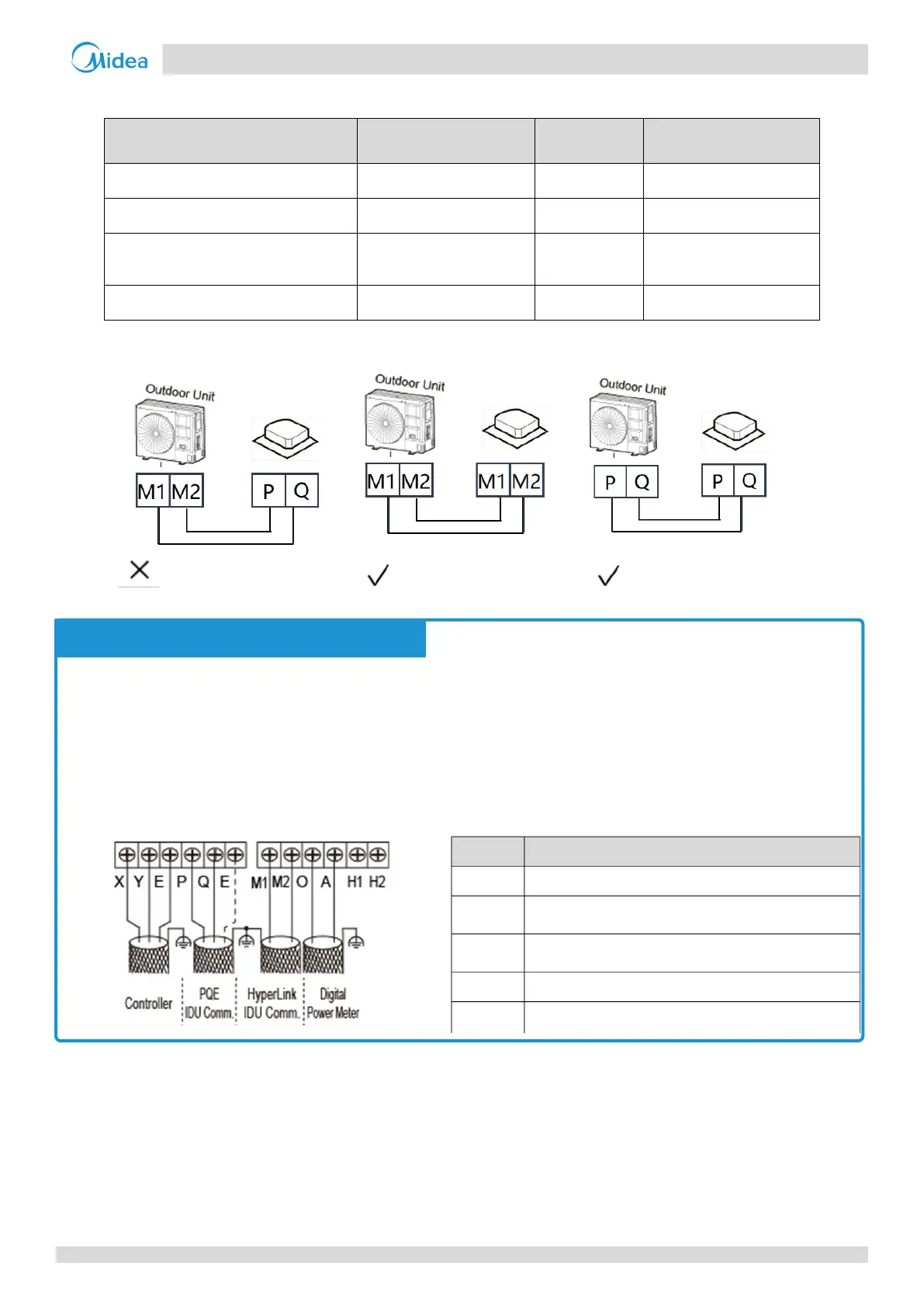 The communication wires should be connected to the master outdoor unit terminals indicated in Figure 3-8.4 and Table