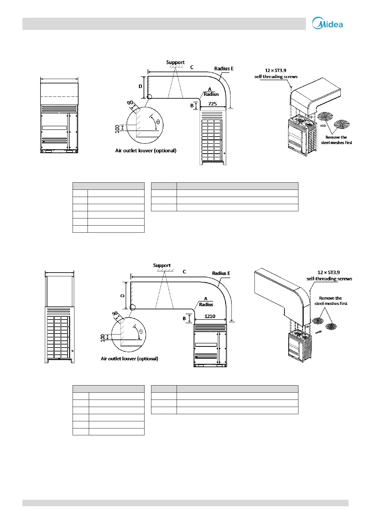 Figure 3-3.5: Longitudinal ducting for 18-22HP units (unit: mm)
