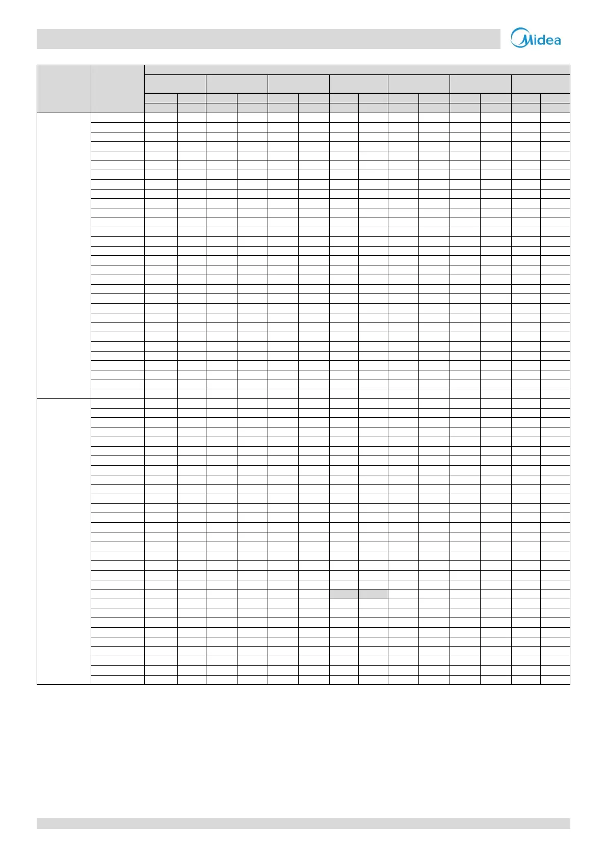 Table 2-8.5: 16HP cooling capacity (continued)