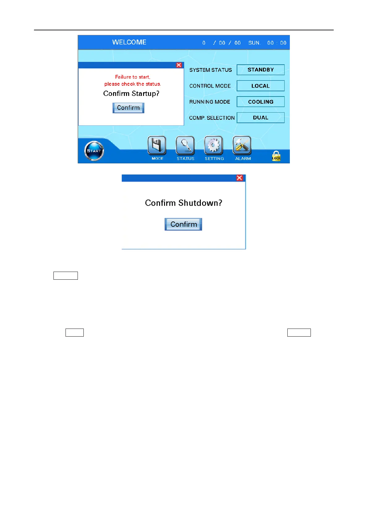 Press START button, and confirm in the pop-up window for startup, then unit can start.