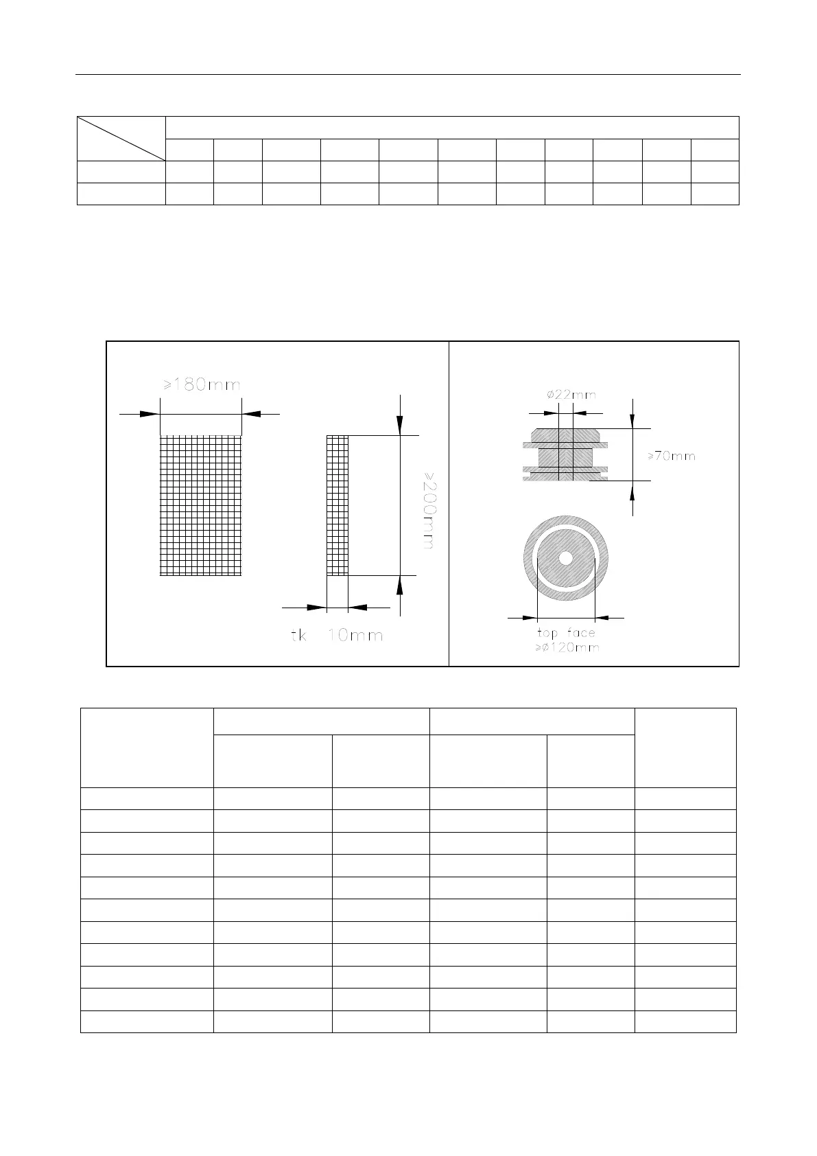 Foundation Bolt Installation Dimension Table