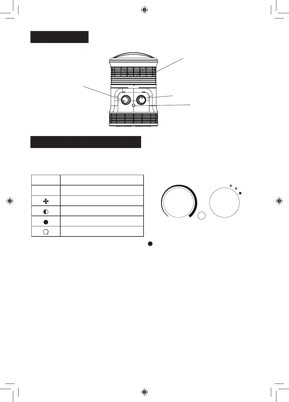 3. Set the control switch to maximum ( ) for fast warming up a room.