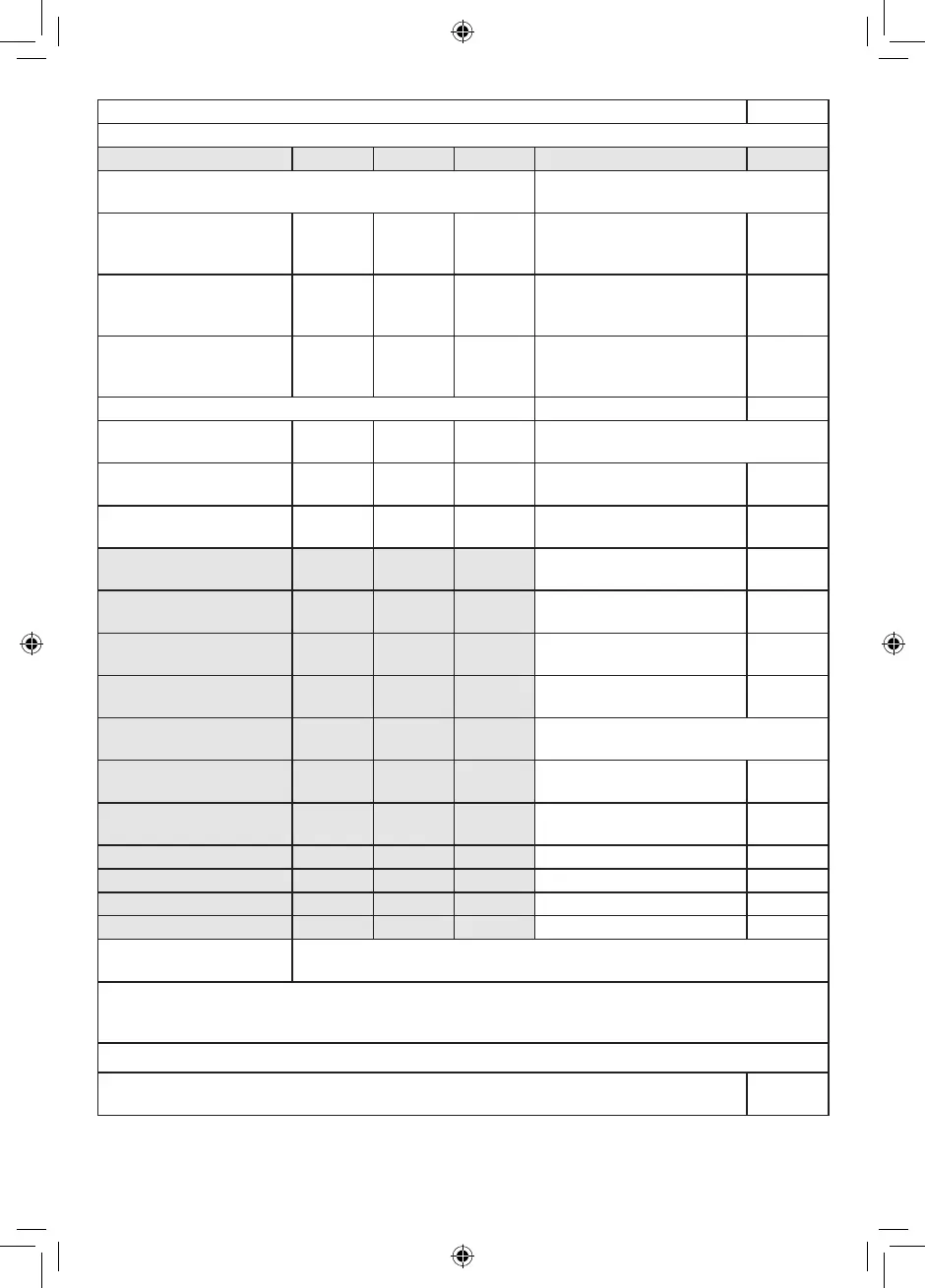 Table for information requirements for electric local space heaters P