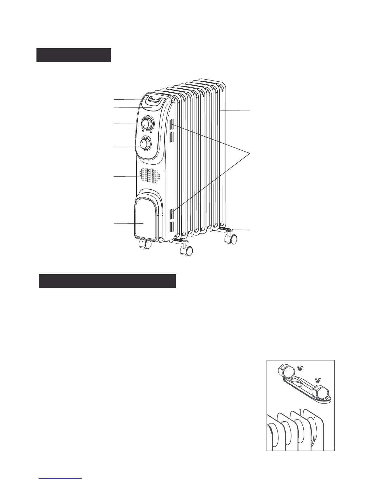 Unpack your heater and find the wheel-holding plate and butterfly nuts