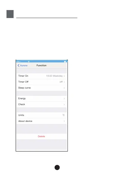 Includin g: Timer on, Timer off, Sleep curve, Check,