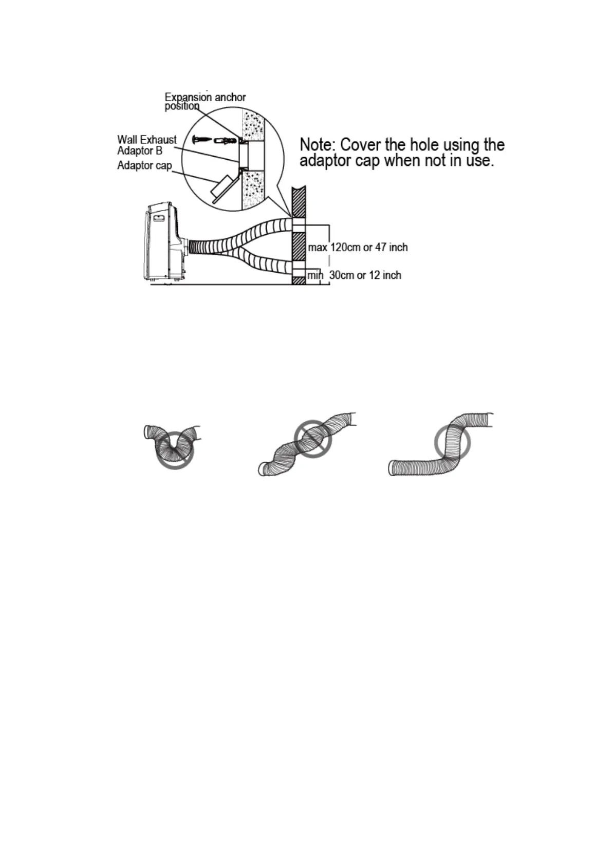 -Connect the Exhaust Hose Assembly(with Wall Exhaust Adaptor A) to the Wall Exhaust Adaptor B.