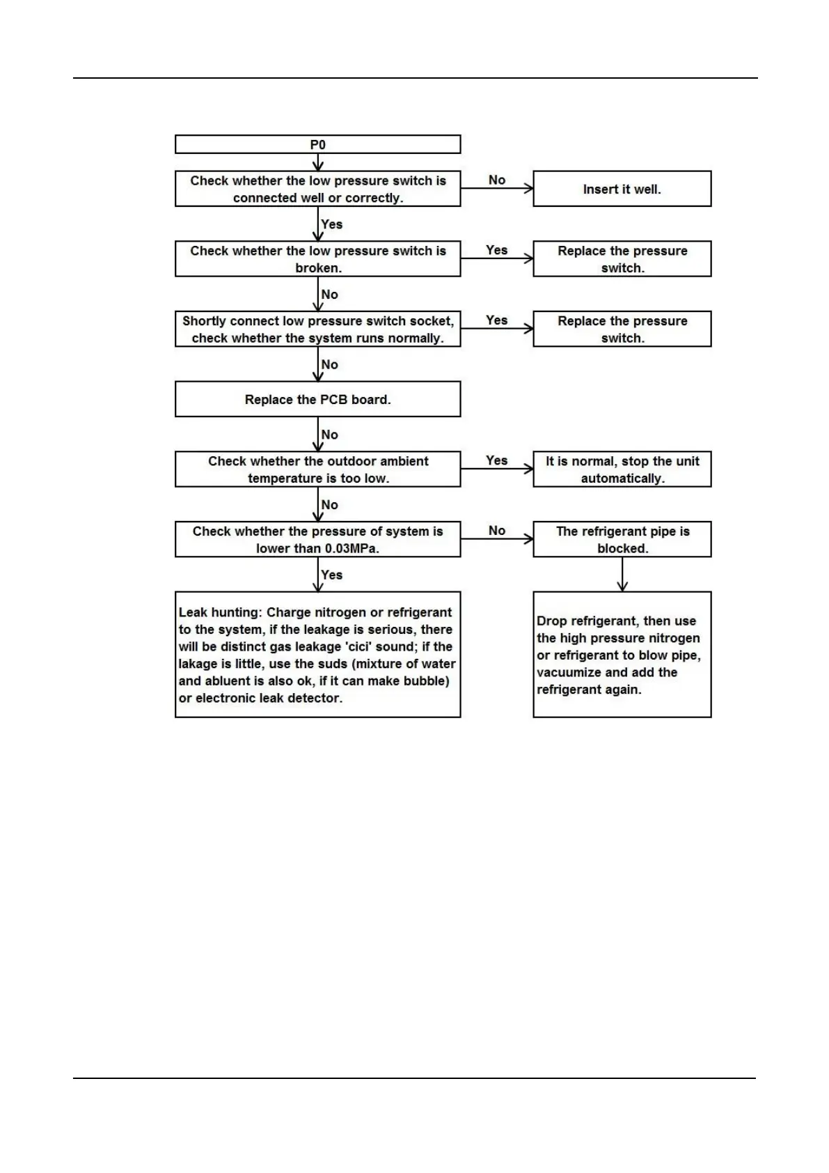 P0: System low pressure protection. P0 appearances when suction pressure 0.05MPa.