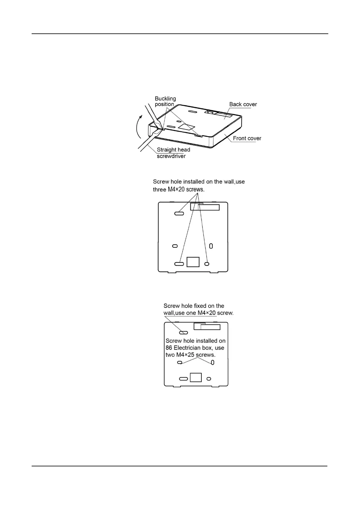 Use two M4×25 screws to install the back cover on the 86 electrician box, and use one M4×20 screw for