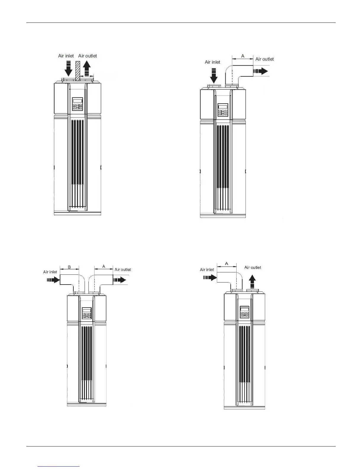 C: Air inlet and outlet with duct. (A+B≤5m) D: Only air inlet with canvas A≤5m