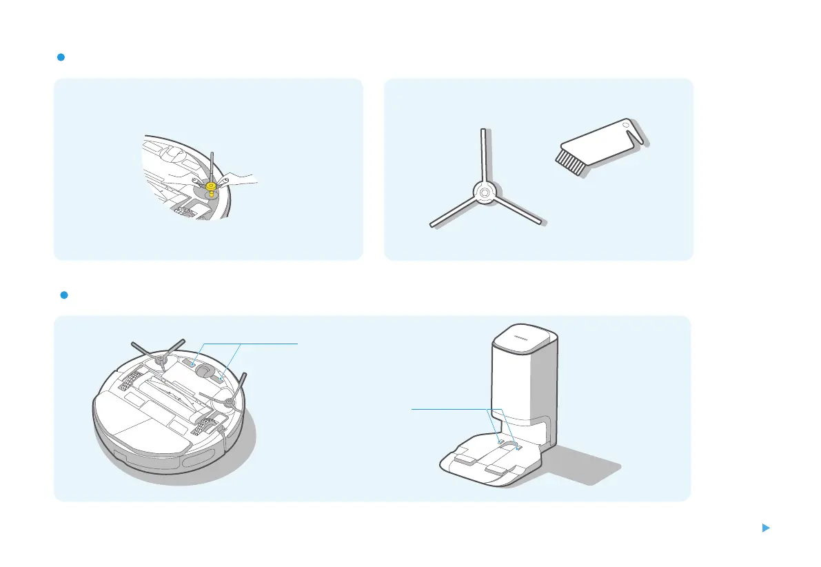 1. Remove side brushes; 2. Dispose of dust adhered to the side brushes.