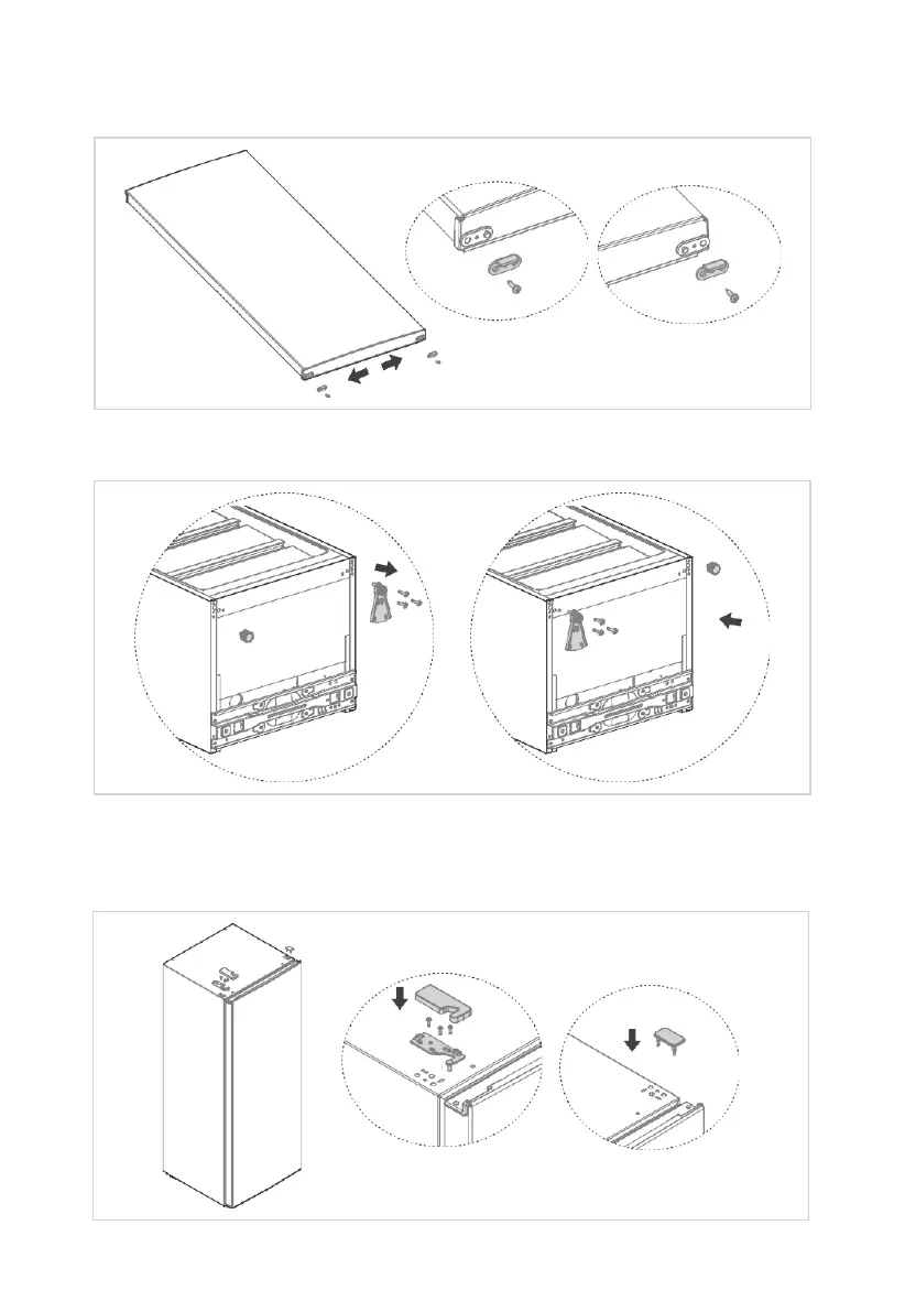 6. Installez la charnière inférieure et le pied de nivellement sur le côté