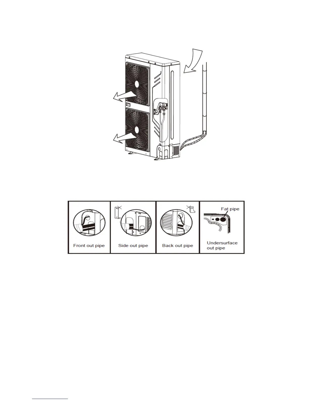 ● Side out pipe: please remove the L-shape metal plate, otherwise can not wiring.