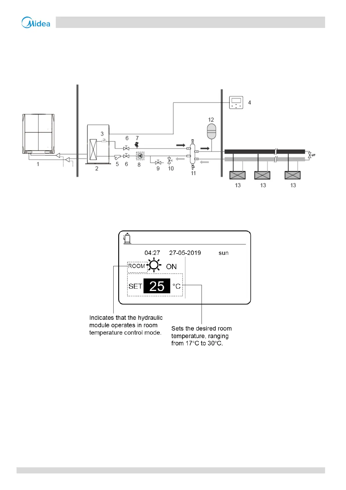 Only heating mode is available and the hydraulic module operates in water outlet room control mode. (For more information,