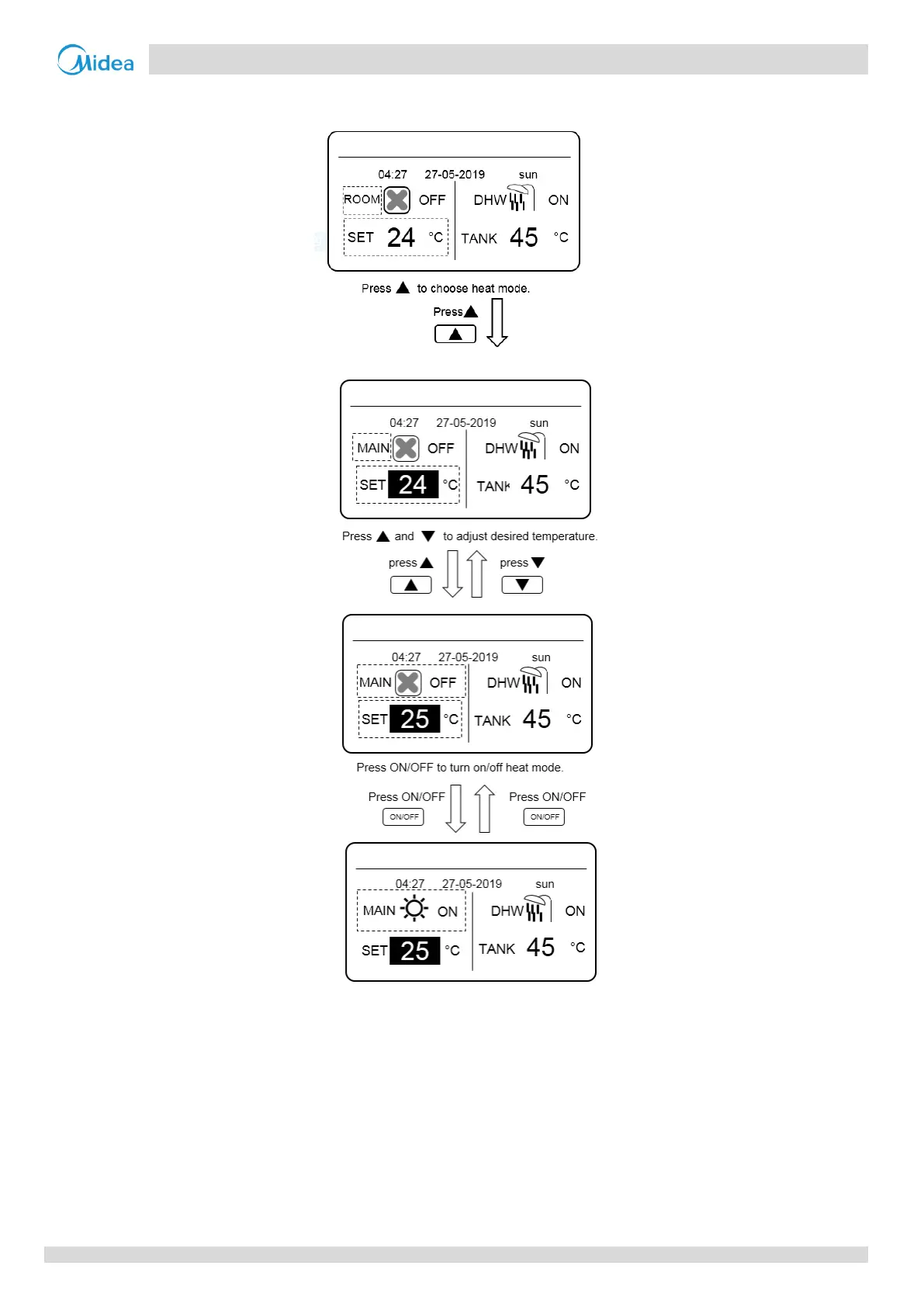 If you adjust temperature or enable/disable a mode, the following interface is displayed: