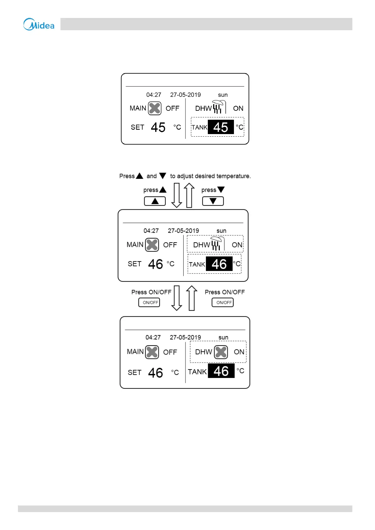 • Take the following steps to set the DHW mode: MENU > FOR SERVICEMAN > DHW MODE.