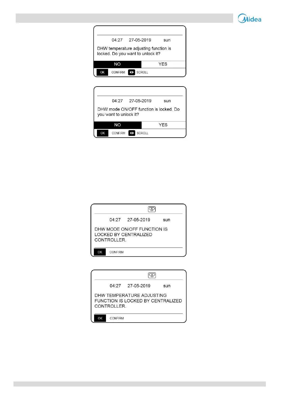 If temperature adjustment function or mode on/off function are locked on the centralized controller, the icon on the top will
