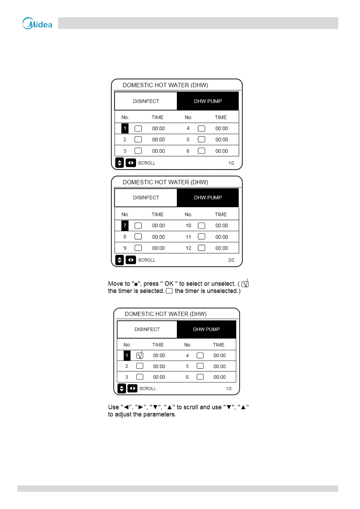 The DHW PUMP function is used to control the start time of the water tank and pump so that hot water can flow out of the