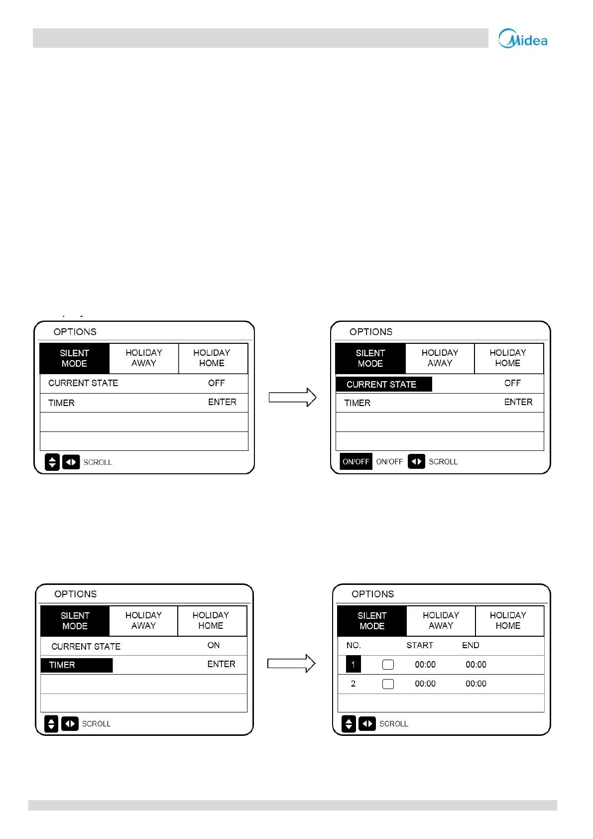 STATE=ON, silent mode is invalid. On the TIMER page, you can set the time for enabling the silent mode. Two periods of time