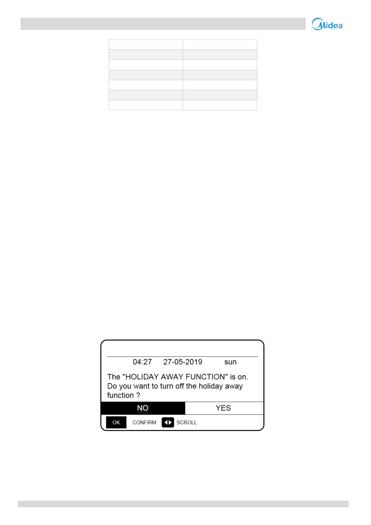 • In holiday mode, timer and weekly schedule are invalid until the hydraulic module exits from holiday mode.