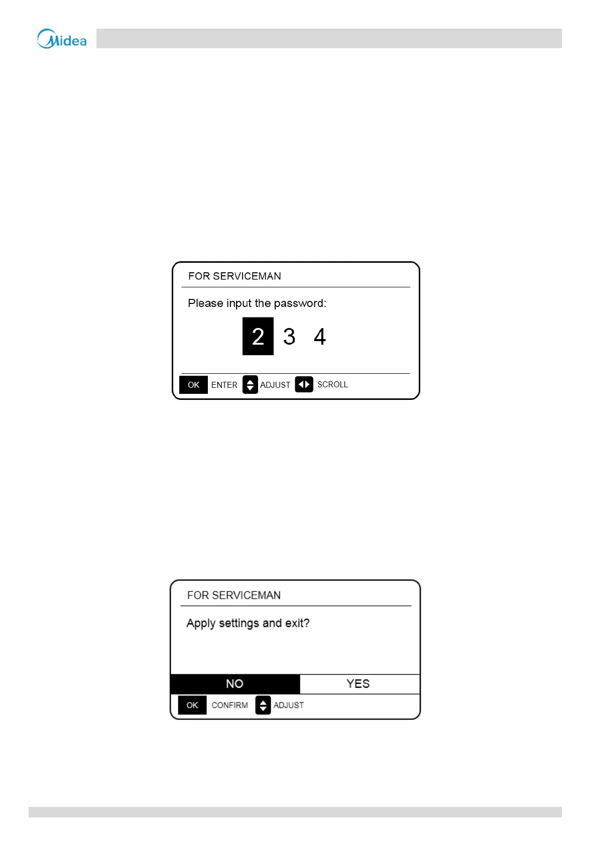 • The FOR SERVICEMAN is used for installers or service engineers. It is NOT intended for home owners to alter setting