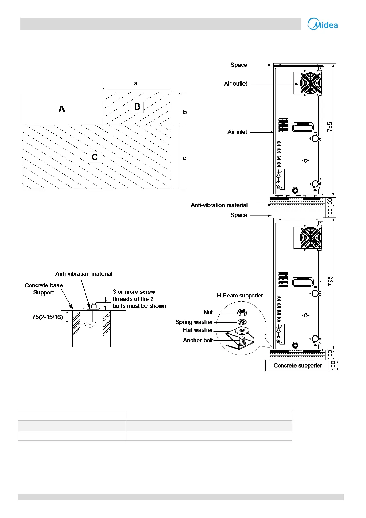 Space for installation and maintenance (in the front)